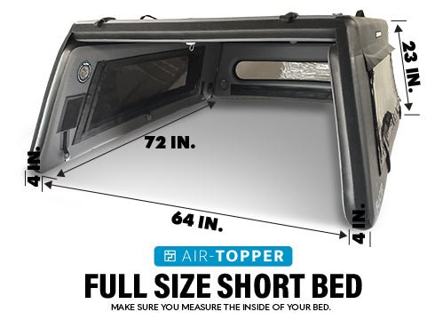 The Full-Size Air-Topper® Short bed 5'4" was designed to fit the most newer model 5.4ft short beds on the Nissan Titan, and older model Ford 150's.